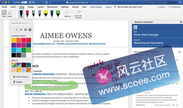 Office 套件 Office 2019 for Mac 继承了 Office for Windows 版本的许多元素,以及去年首次亮相的移动客户端应用程序 Office。更新磁带,这是一个新的排列工具和格式化功能,基于电脑 Mac 的最新功能,新的主题和样式,完全重新设计了用户界面。甚至还有一个本着 Yosemite 精神的新设计主题,它最大限度地利用了支持全屏应用程序、macOS 等功能。
