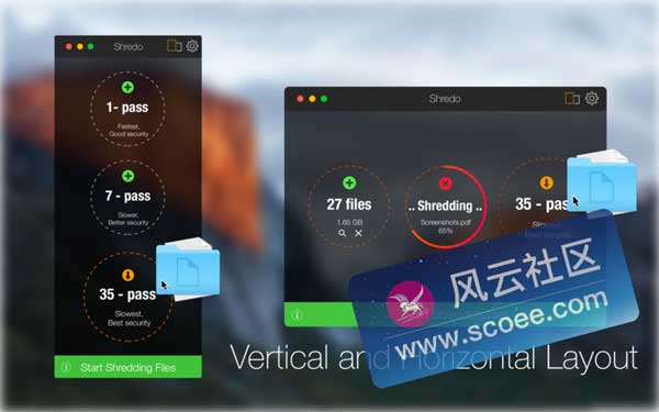 Shredo 是一个美观、实用的文件粉碎实用程序。它永久粉碎文件、文件夹和外部卷的内容,以确保信息安全且任何人都无法检索。