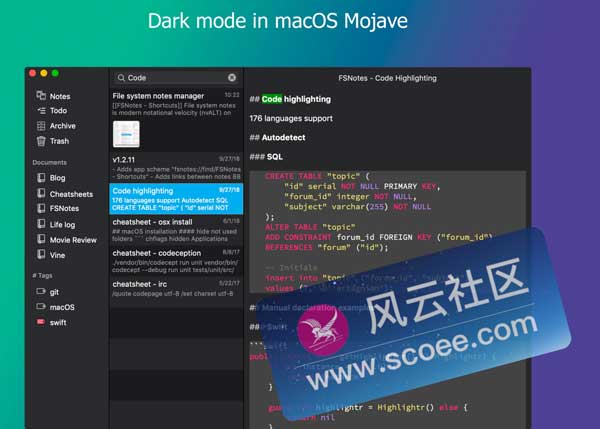 FSNotes是macOS的纯文本注释管理器,是对类固醇的符号速度(nvALT)的现代改造。我们的应用程序遵循以下开放格式:纯文本/文本,Markdown和RTF,并将数据存储在文件系统中。您可以在喜欢的外部编辑器中查看,编辑和复制数据,并在FSNotes中查看实时结果。