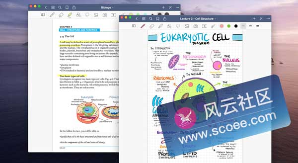 - 使用iPad上的Sidecar,使用键盘创建数字笔记本并输入文本,或者使用鼠标/触控板或Apple Pencil进行书写和绘图